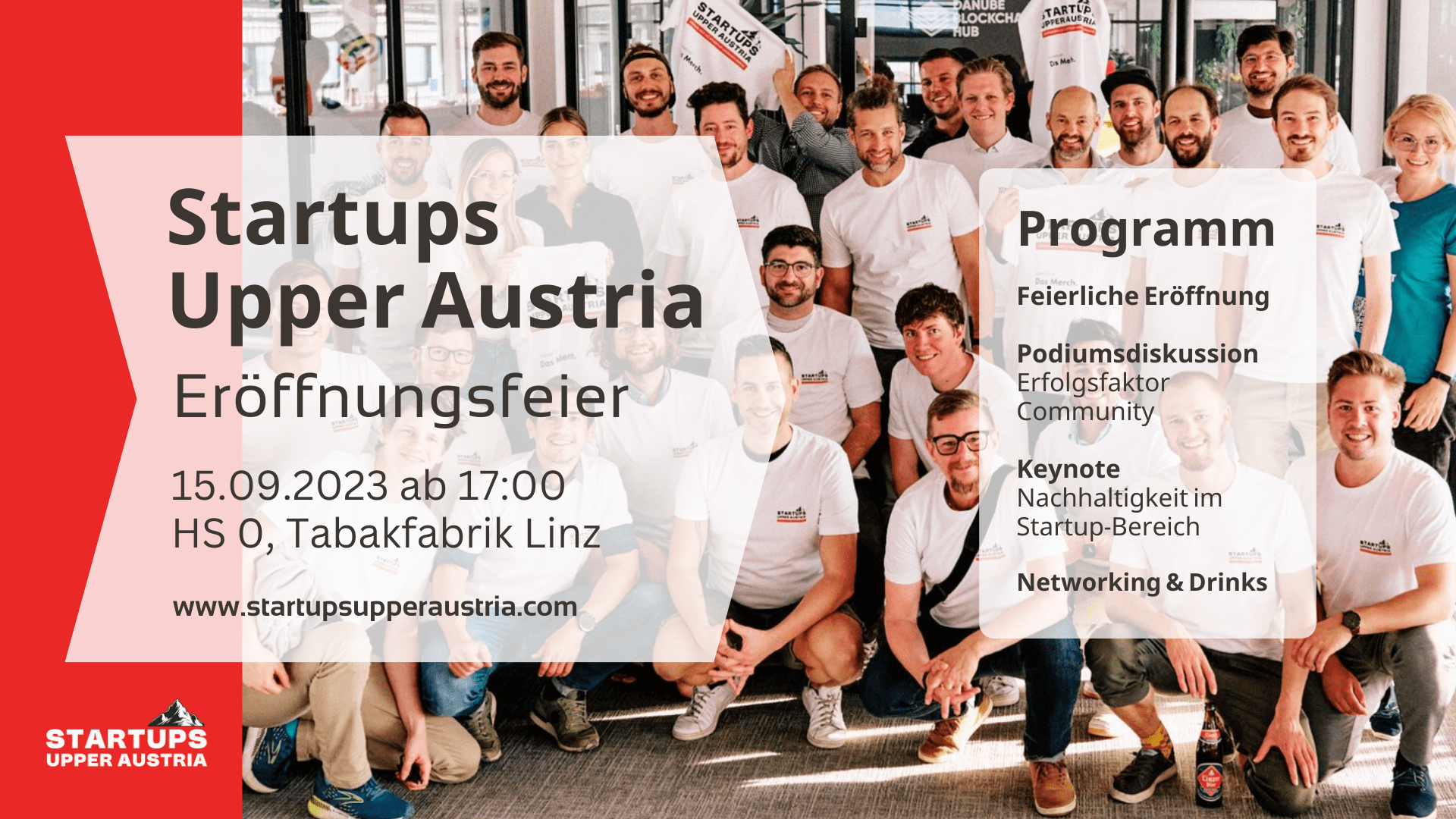 Liebe/r Freund/in der Startup-Welt, Wir haben großartige Neuigkeiten und möchten dich herzlich zur feierlichen Eröffnung von Startups Upper Austria einladen! Gemeinsam setzen wir uns mit vollem Engagement für die GründerInnen Community in Oberösterreich ein und freuen uns, wenn du Teil unserer feierlichen Eröffnung bist. Datum: 15. September 2023 Get together: 17:00 Uhr, Beginn: 18:00 Uhr […]